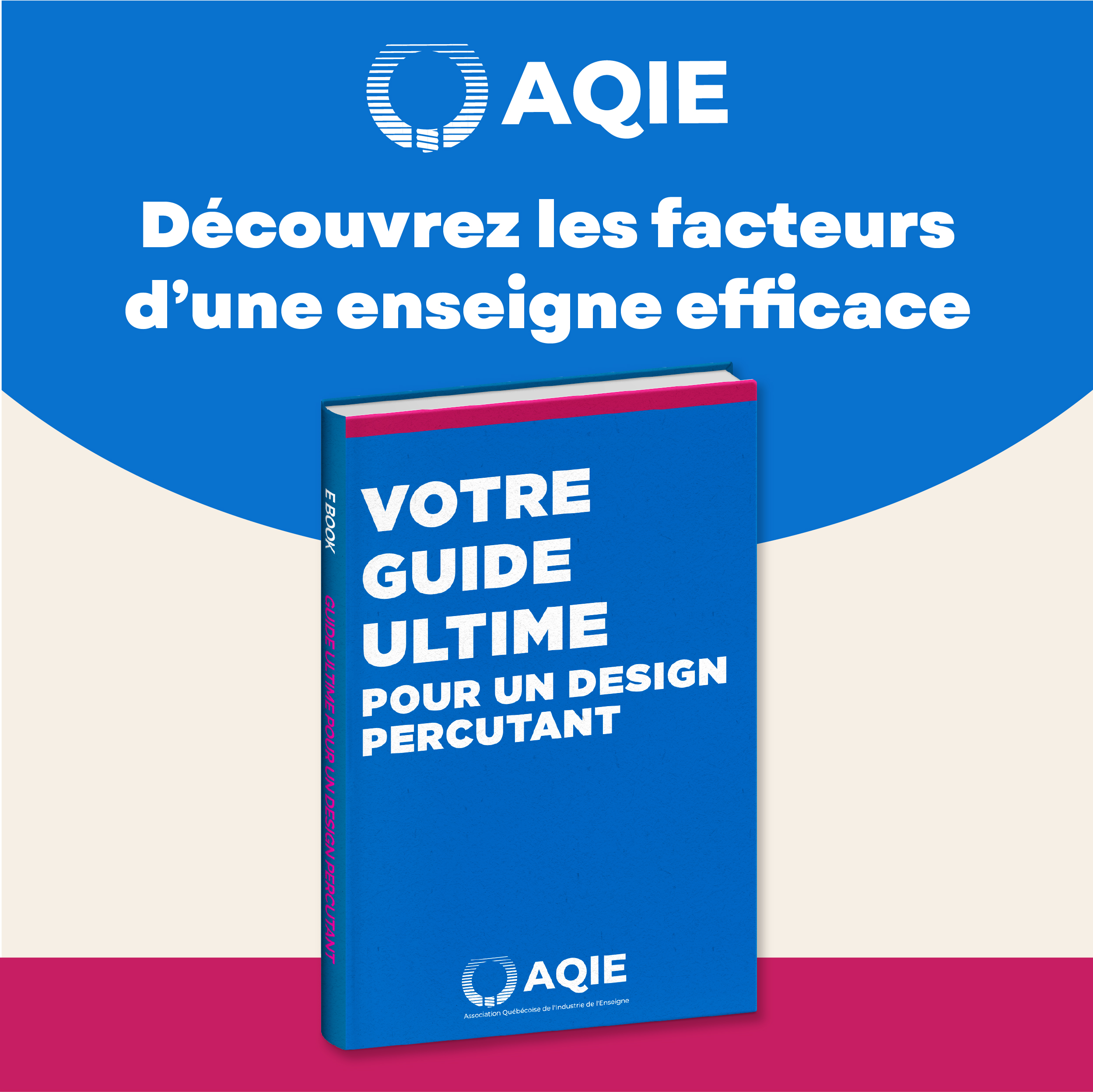 NOUVEAU ; Découvrez les meilleures pratiques de l’industrie pour un design percutant de votre enseigne. Rendez-vous sur cette page pour obtenir sans frais le Guide Ultime pour un design d’enseigne percutant.
